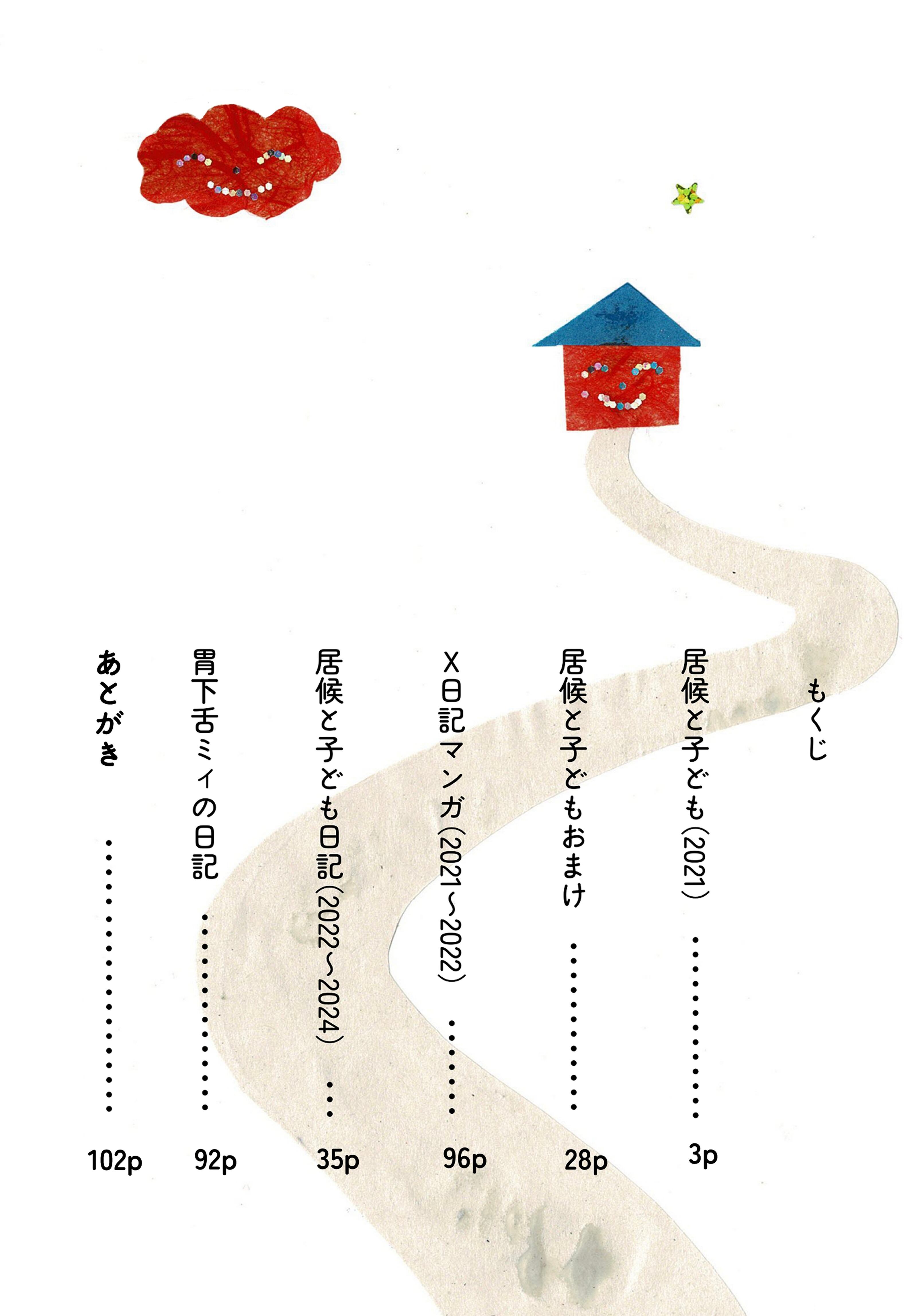2021年にTwitterで公開した読み切り「居候と子供」と、2022〜2023にミスiDクラブで連載していた「居候と子供日記」に、非公開の2024年の書き下ろしエッセイを収録しました。